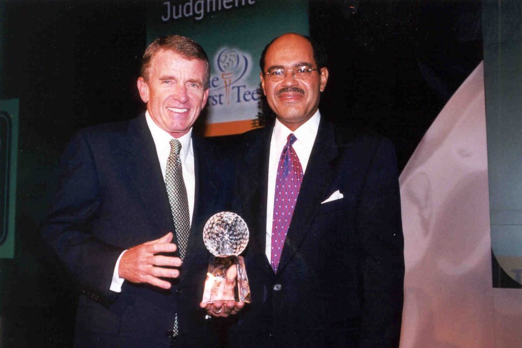 Inspired by a speech made by 16-year-old Steven Outlaw. Dr. William Crouch, then-president of Georgetown College, surprised the audience by spontaneously offering Outlaw a scholarship to his school, launching First Tee Scholars Program.