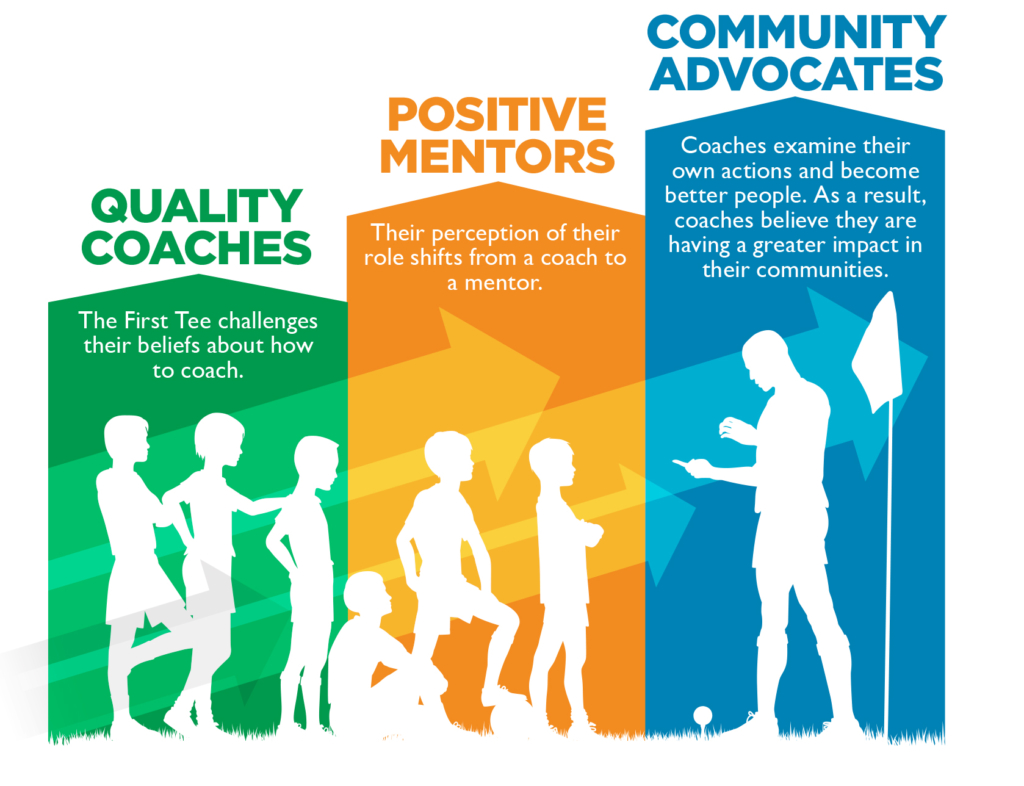 New research confirms after participating in The First Tee’s multi-level and multi-year coach development program, coaches are transformed over time from quality coaches to community advocates.- 90% believe they are better at coaching